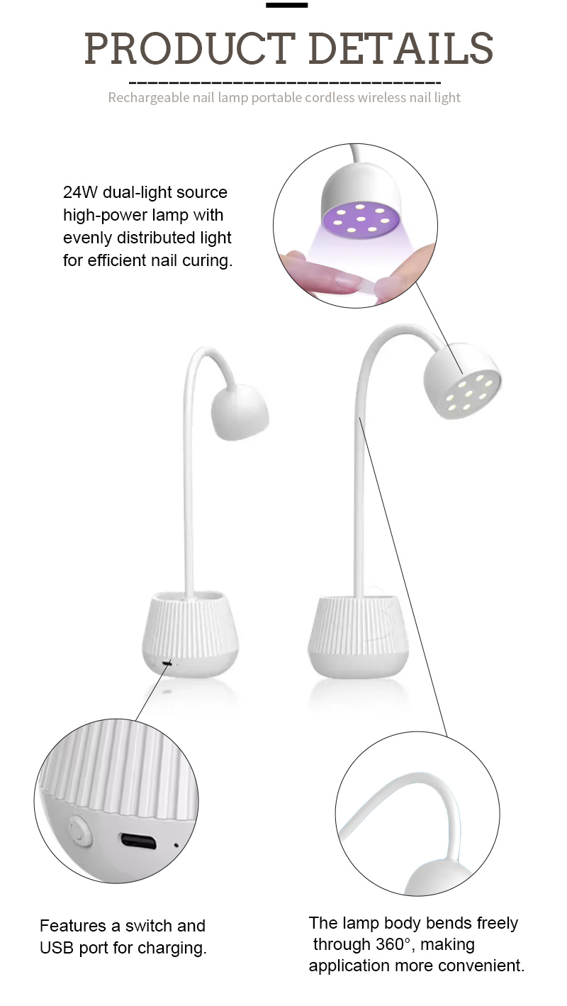 Het product zorgt voor een gelijkmatige lijmdroging zonder krimp. De dubbele lichtbronnen zorgen voor een zachte verwarming om verkleuring van de handen en vermoeide ogen te voorkomen, geschikt voor zowel handen als voeten, en leveren opmerkelijk snelle droogresultaten op.