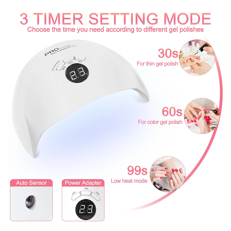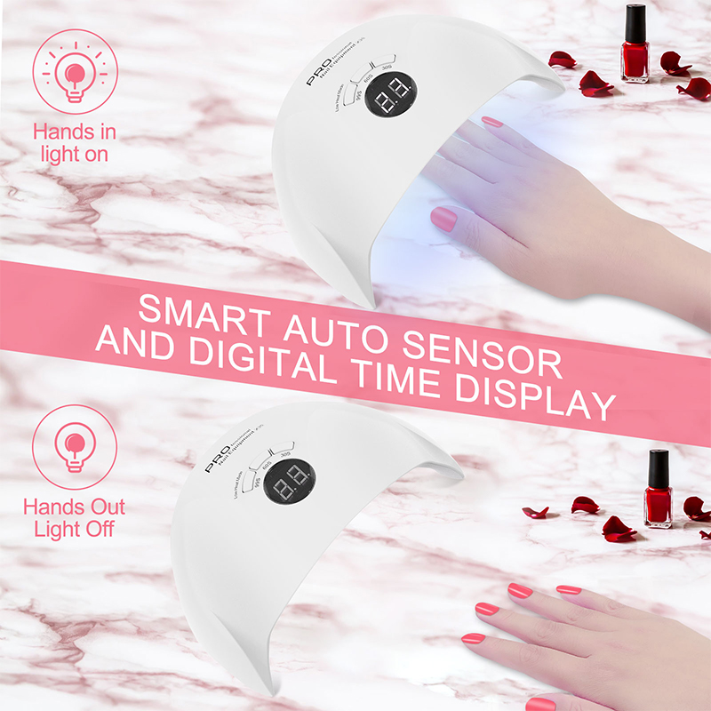 Het product heeft 36 led/uv dubbele lichtbron lampkralenverdeling uniformiteit, baklijm uniformiteit zonder krimpende lijm, dubbele lichtbron milde baklijm anti-zwarte hand, doet geen pijn aan de ogen, handen en voeten kunnen worden gebruikt, sneldrogend effect is hoog.