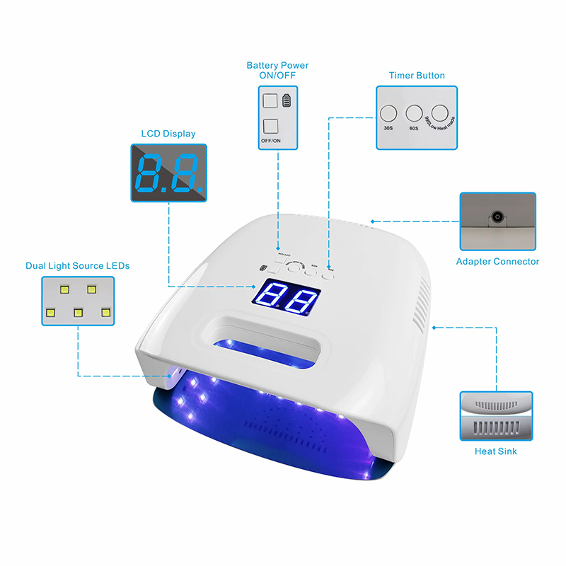 Het product heeft 36 led/uv dubbele lichtbron lampkralenverdeling uniformiteit, baklijm uniformiteit zonder krimpende lijm, dubbele lichtbron milde baklijm anti-zwarte hand, doet geen pijn aan de ogen, handen en voeten kunnen worden gebruikt, sneldrogend effect is hoog.