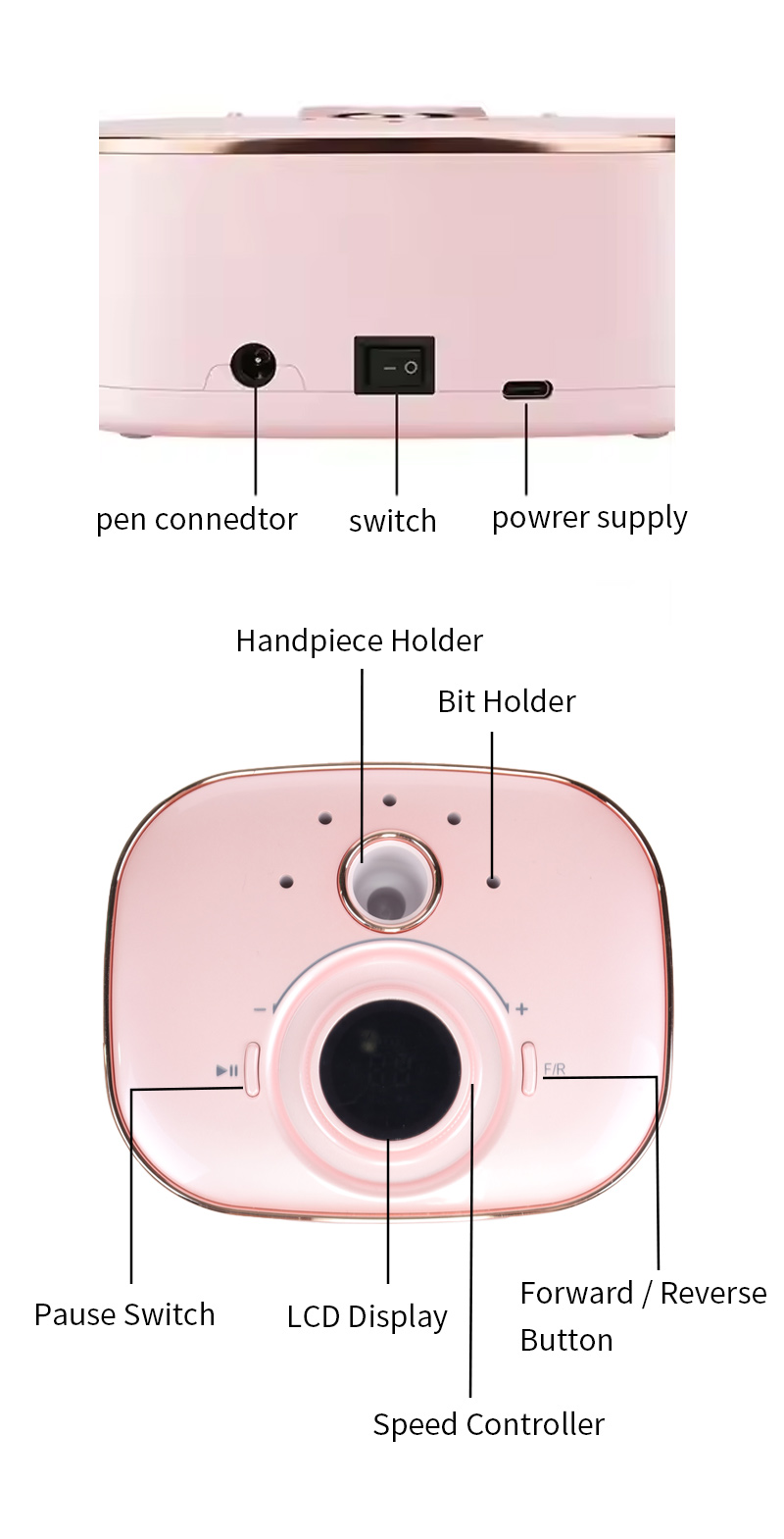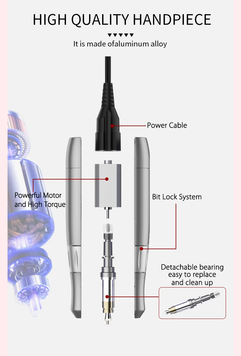 Draagbare nagelboorset elektrisch met krachtige motor 65w 35000rpm