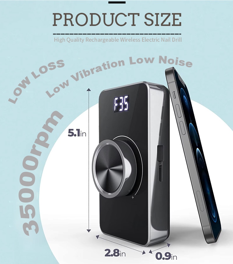 Het displayontwerp van deze exfoliërende elektrische nagelboormachine met een toerental van 35.000 tpm heeft een aan/uit-schakelaar en voorwaartse/achterwaartse rotatie voor een totaal van activering met één knop, een snellaadaansluiting aan de onderkant, een vervangbare booraansluiting aan de bovenkant en een in drie standen instelbare snelheid om aan verschillende behoeften te voldoen.