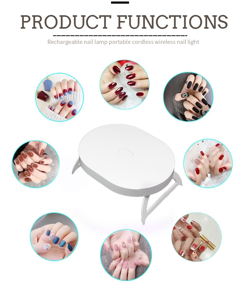 De opvouwbare mini-nageldrooglamp is voorzien van slimme infraroodsensortechnologie die automatisch oplicht wanneer de handen dichterbij komen en uitgaat wanneer de handen weggaan - waardoor het gedoe van het herhaaldelijk indrukken van knoppen wordt geëlimineerd en tijd en moeite worden bespaard. Krachtige baklijm vereist geen lange wachttijd, wat zowel tijd als moeite bespaart.