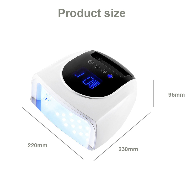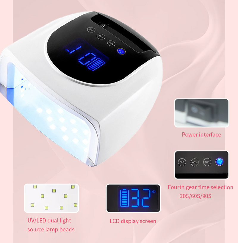 Het product zorgt voor een gelijkmatige lijmdroging zonder krimp. De dubbele lichtbronnen zorgen voor een zachte verwarming om verkleuring van de handen en vermoeide ogen te voorkomen, geschikt voor zowel handen als voeten, en leveren opmerkelijk snelle droogresultaten op.