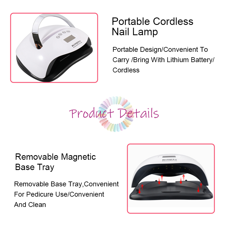Onze belangrijkste producten omvatten LED-spijkerlampen: 186W/168W/86W/84W/80W/75W/72W/65W/60W/54W/50W/48W/36W/24W/16W/12W/6W/3W, enz. Oplaadbare draadloze modellen: 156W/120W/96W/90W/86W/84W/80W/72W/66W/64W/60W/54W/48W enz. Nagelkunstboren: 80W/65W/60W/45W/35W/25W/15W enz. Modellen voor draadloos opladen: 45W, 35W, 30W, 25W, 20 W, 15 W, enz. 25000 RPM/30000 RPM/35000 RPM/40000 RPM/45000 RPM/Borstelloos/Ultrahoge snelheid borstelloos. Volledige stofafscheider. 80W/68W/60W/48W/45W/40W/36W/30W/25W/20W/15W/6W enz., Modellen voor draadloos opladen: 80W, 60W, 40W, 30W.