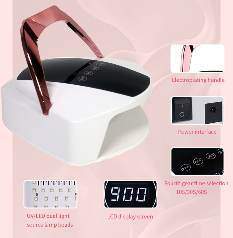 Het product zorgt voor een gelijkmatige lijmdroging zonder krimp. De dubbele lichtbronnen zorgen voor een zachte verwarming om verkleuring van de handen en vermoeide ogen te voorkomen, geschikt voor zowel handen als voeten, en leveren opmerkelijk snelle droogresultaten op.