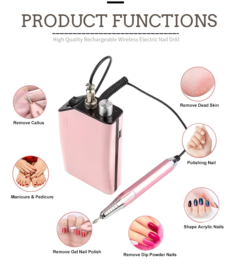 Draagbare nagelboorset elektrisch met krachtige motor 65w 35000rpm
