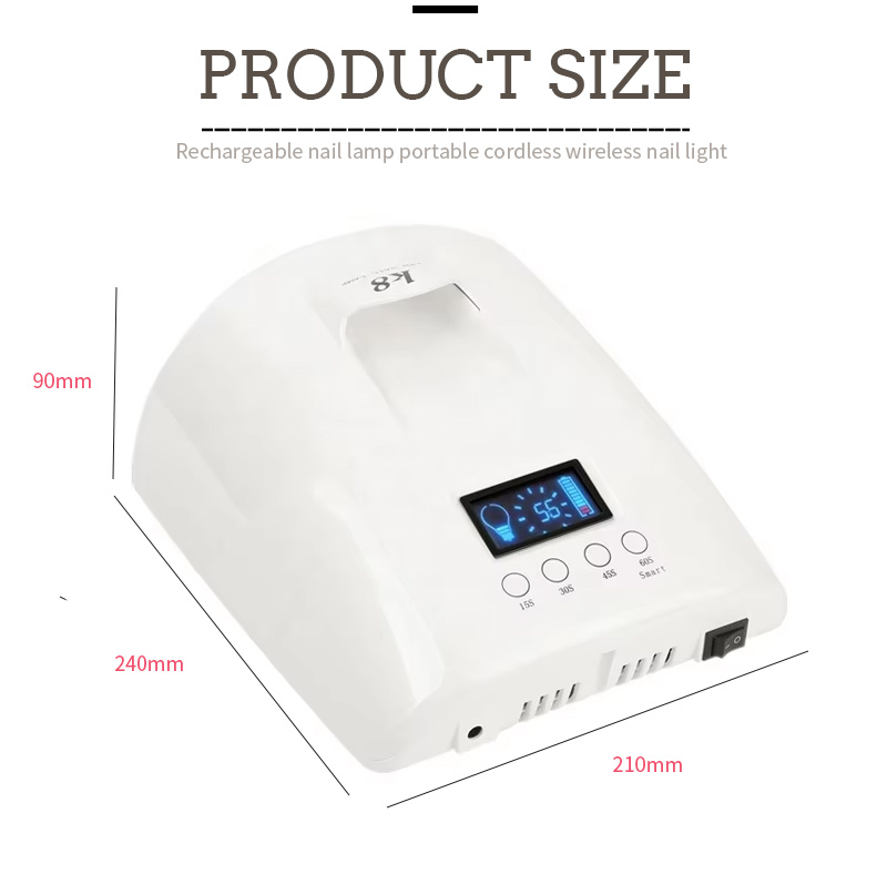 De afmetingen van de nageldrooglamp met grote capaciteit en handvat zijn 205 mm lang, 220 mm breed en 104 mm hoog, met een grote capaciteit en de mogelijkheid om zowel handen als voeten te gebruiken, wat erg handig is.