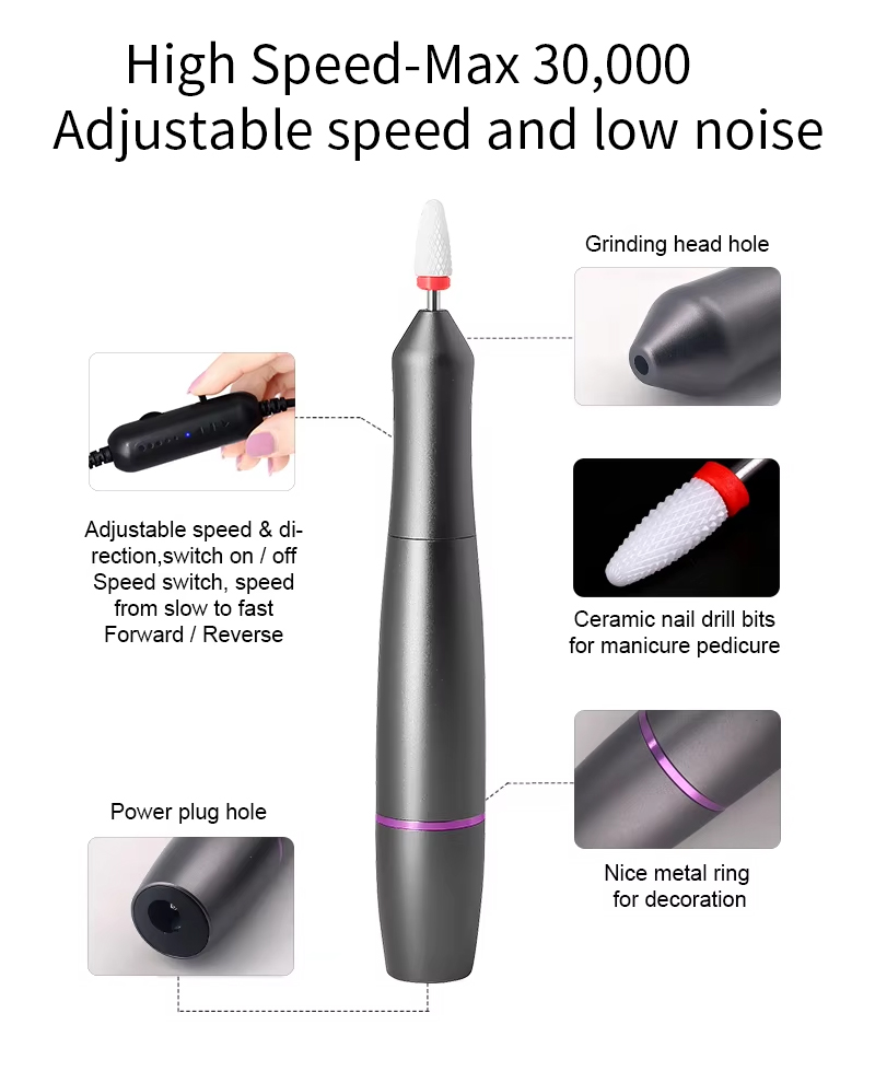 Productkenmerk en toepassing van de geluidsarme penvormige nail art-boor