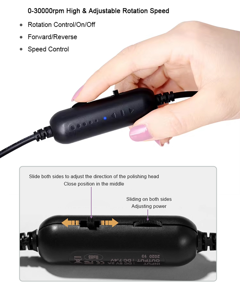 1, instelbare snelheid, krachtige motor, schuren op hoge snelheid, traploze real-time snelheidsaanpassing.