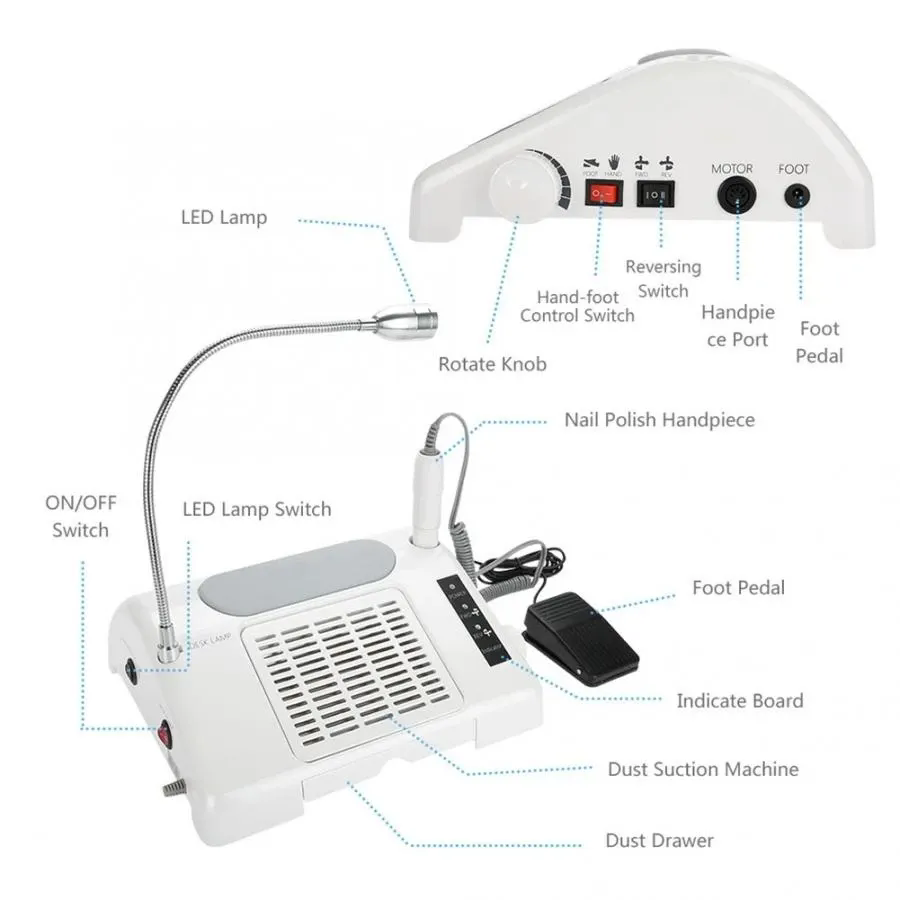 2 In 1 Nagelboor Stofafscheider Professioneel 30000 Rpm 40 W