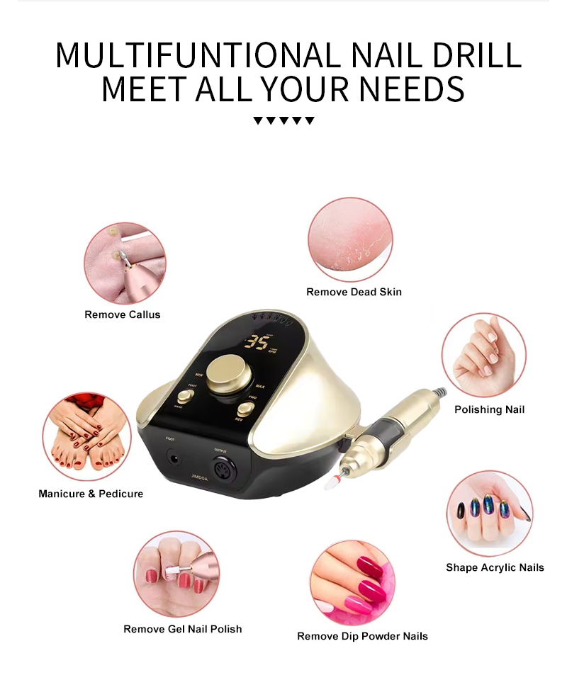 Nagelboorset Elektrisch om gellak te verwijderen 65w 35000rpm