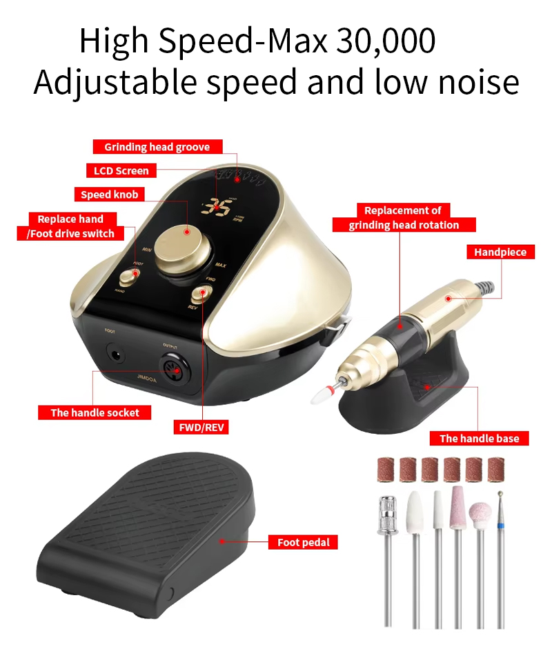 Nagelboorset Elektrisch Vijl Professioneel 65w 35000rpm