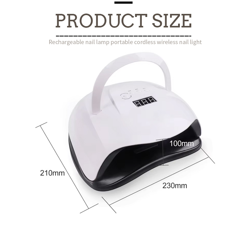 De afmetingen van de draagbare nageldrooglamp zijn 180 mm lang, 190 mm breed en 85 mm hoog, met een grote capaciteit en de mogelijkheid om zowel handen als voeten te gebruiken, wat erg handig is.