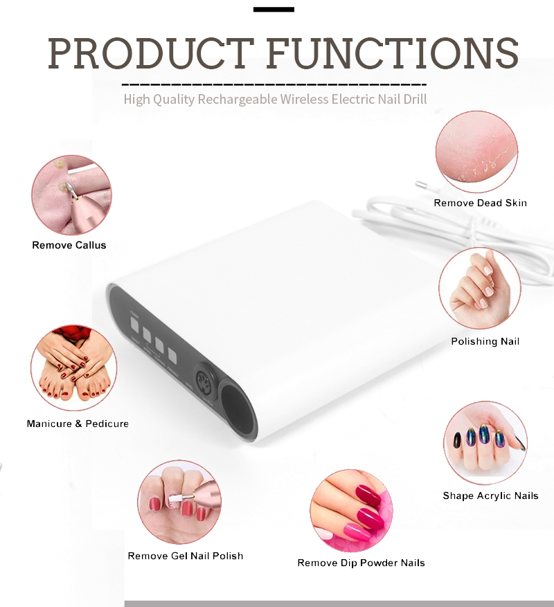 Draagbare nagelboorset elektrisch met krachtige motor 65w 35000rpm