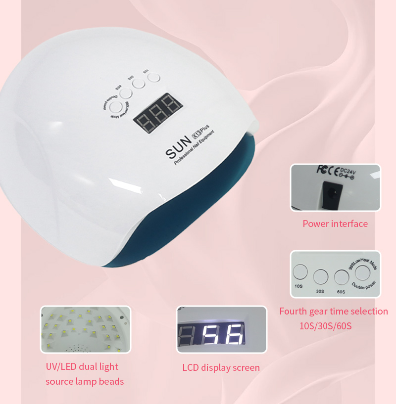 Het product zorgt voor een gelijkmatige lijmdroging zonder krimp. De dubbele lichtbronnen zorgen voor een zachte verwarming om verkleuring van de handen en vermoeide ogen te voorkomen, geschikt voor zowel handen als voeten, en leveren opmerkelijk snelle droogresultaten op.