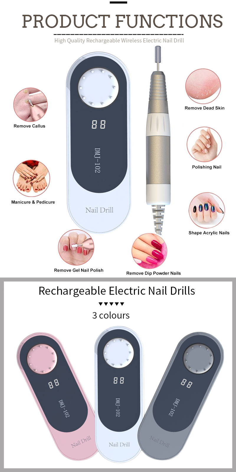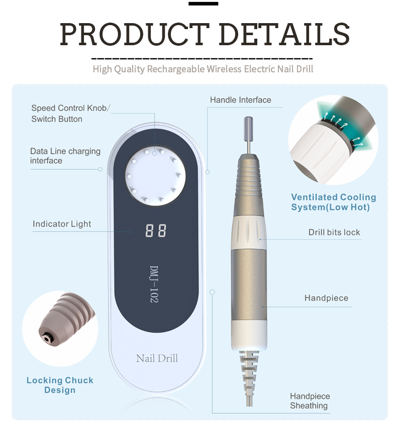 DMJ-102 Snelle elektrische nagelvijl met 35.000 tpm voor het verwijderen van nagellak: kenmerken en toepassingen