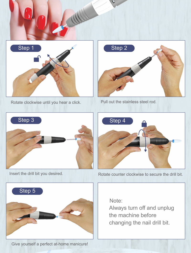 Nagelboorset Elektrisch om gellak te verwijderen 65w 35000rpm