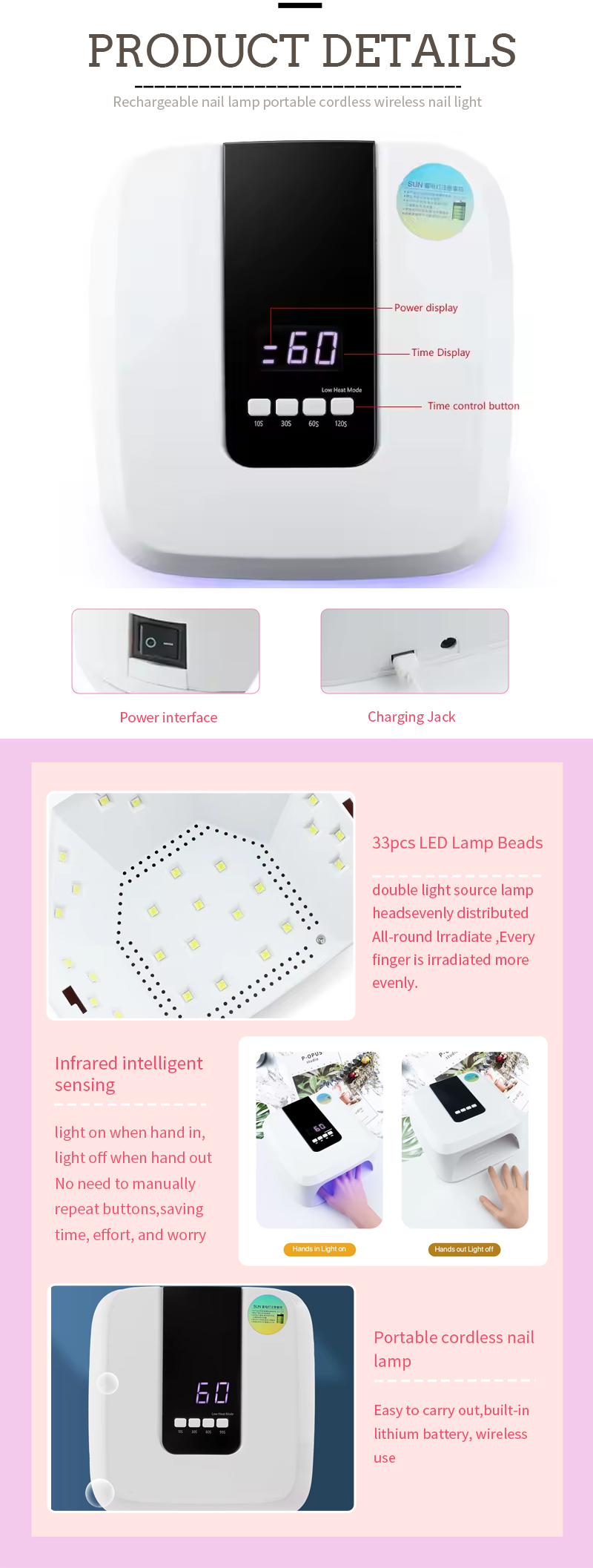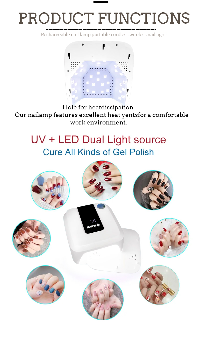 Het product zorgt voor een gelijkmatige lijmdroging zonder krimp. De dubbele lichtbronnen zorgen voor een zachte verwarming om verkleuring van de handen en vermoeide ogen te voorkomen, geschikt voor zowel handen als voeten, en leveren opmerkelijk snelle droogresultaten op.