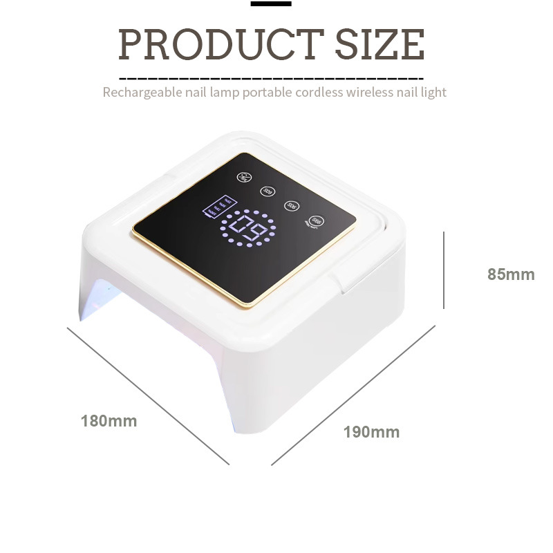 De afmetingen van de vierkante nageldrooglamp zijn 180 mm lang, 190 mm breed en 85 mm hoog, met een grote capaciteit en de mogelijkheid om zowel handen als voeten te gebruiken, wat erg handig is.