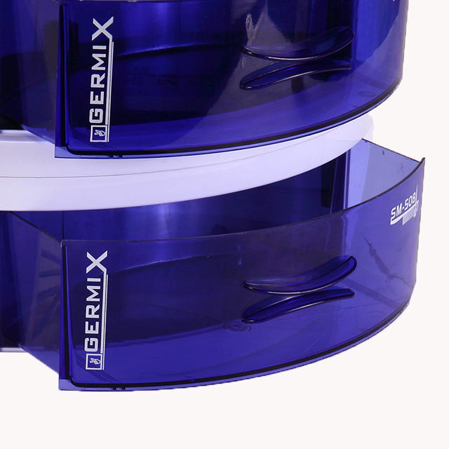 UV-sterilisator desinfectiekast machinebox 10w die het gereedschap (zoals scharen, tangen, borstels, enz.) desinfecteert met klassiek UV-licht. Een sterk punt is dat het licht wordt uitgeschakeld en stopt met werken wanneer de kast wordt uitgetrokken, om schade aan de operator te voorkomen