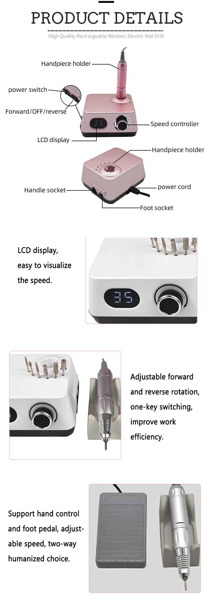 | Draadloze elektrische nagelboormachine met 35.000 RPM-details |